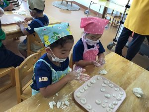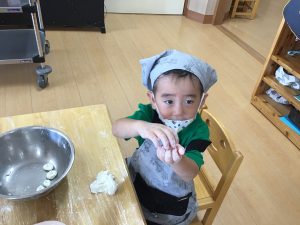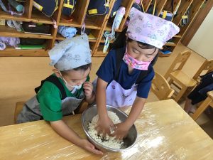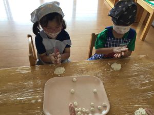 中秋の名月と満月の重なる10月6日にぱんだ組でお月見団子を作りました。