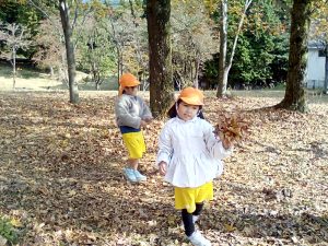 どんぐりや葉っぱなど秋の自然を満喫し、笑顔一杯の1日になりました。